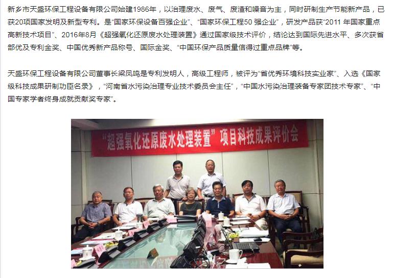 中國高新技術(shù)網(wǎng)發(fā)布:《關(guān)注:解碼科技創(chuàng)新》——新鄉(xiāng)市天盛環(huán)保“超強氧化還原廢水處理技術(shù)”