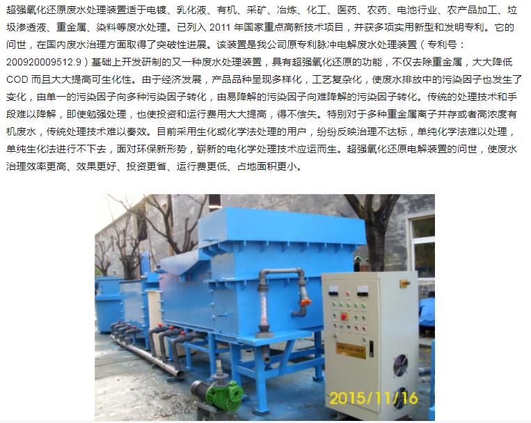 超強氧化還原廢水處理裝置(CYH法)處理各種有機(jī)廢水、各種重金屬廢水